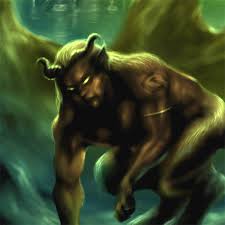 the head of a man (with horns) and torso of a human but had the legs and feet