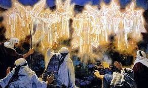 shepherds watching over their flocks. Suddenly, an angel of the Lord appeared