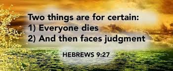 must die once, and after that be judged by God.” Hebrews 9:27 Good