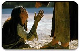 distraught woman: “Daughter, your faith has made you well; go in peace and