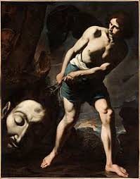 Reaching into his shepherd’s bag and taking out a stone, he hurled it with his sling and hit the Philistine in the forehead.