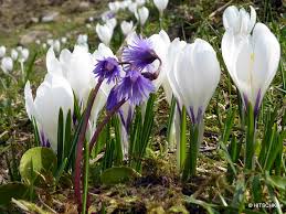 crystalline texture of its mauve petals sparkling like snow itself as if it