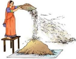 – winnowing… (tossing the grain into the air with