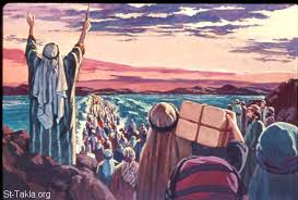 Egyptians from them as they crossed over the seabed between two walls of water.